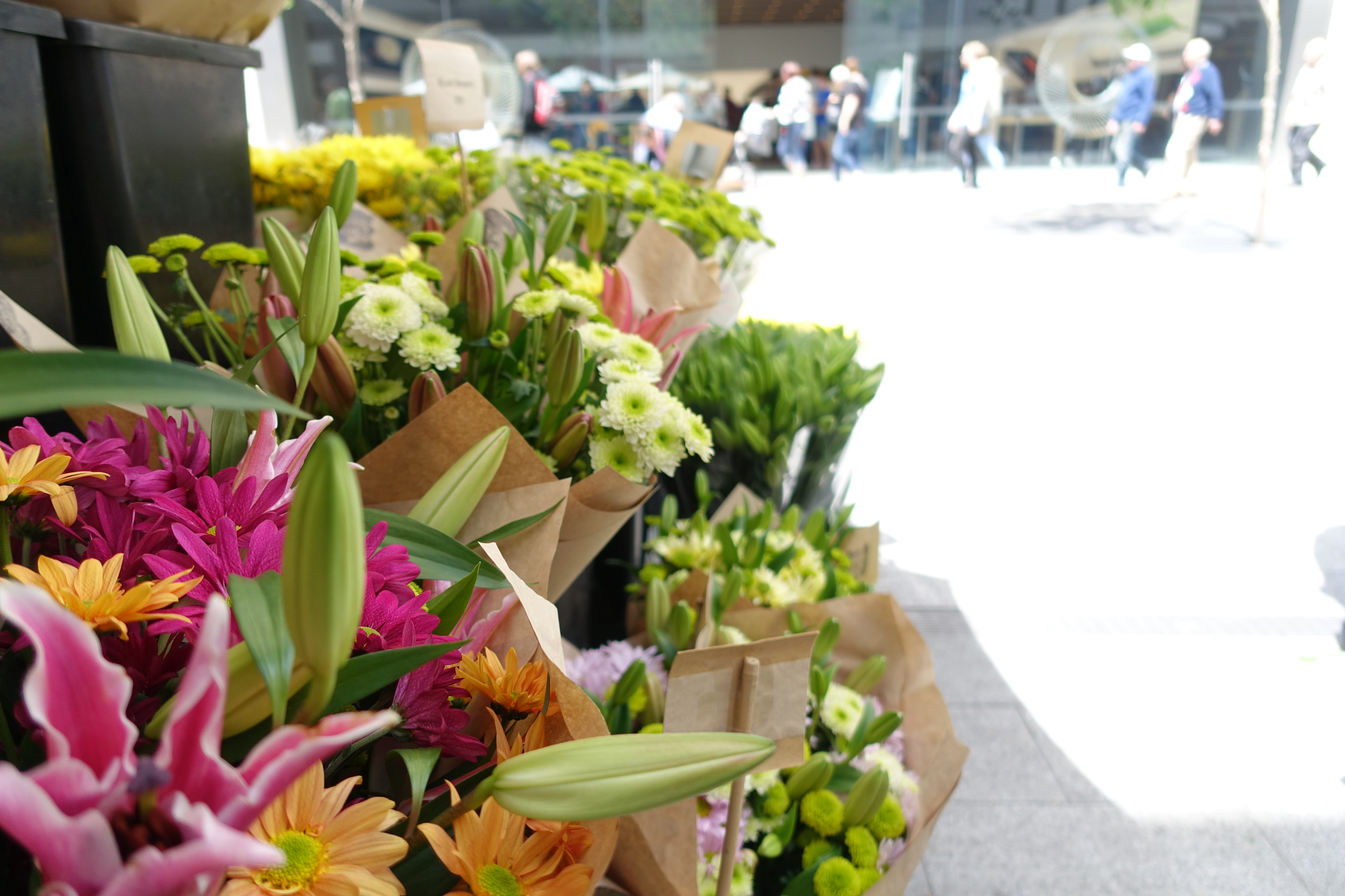 The Rundle Mall redevelopment seems like it’s been going on for an eternity, much to the dismay of its retailers. Finally it’s starting to get somewhere. The warmer weather is bringing more people out, the al fresco seating idea is starting to take off and my favourite thing of all is the The Flower Depo pop up florist displaying fresh blooms in brown paper.