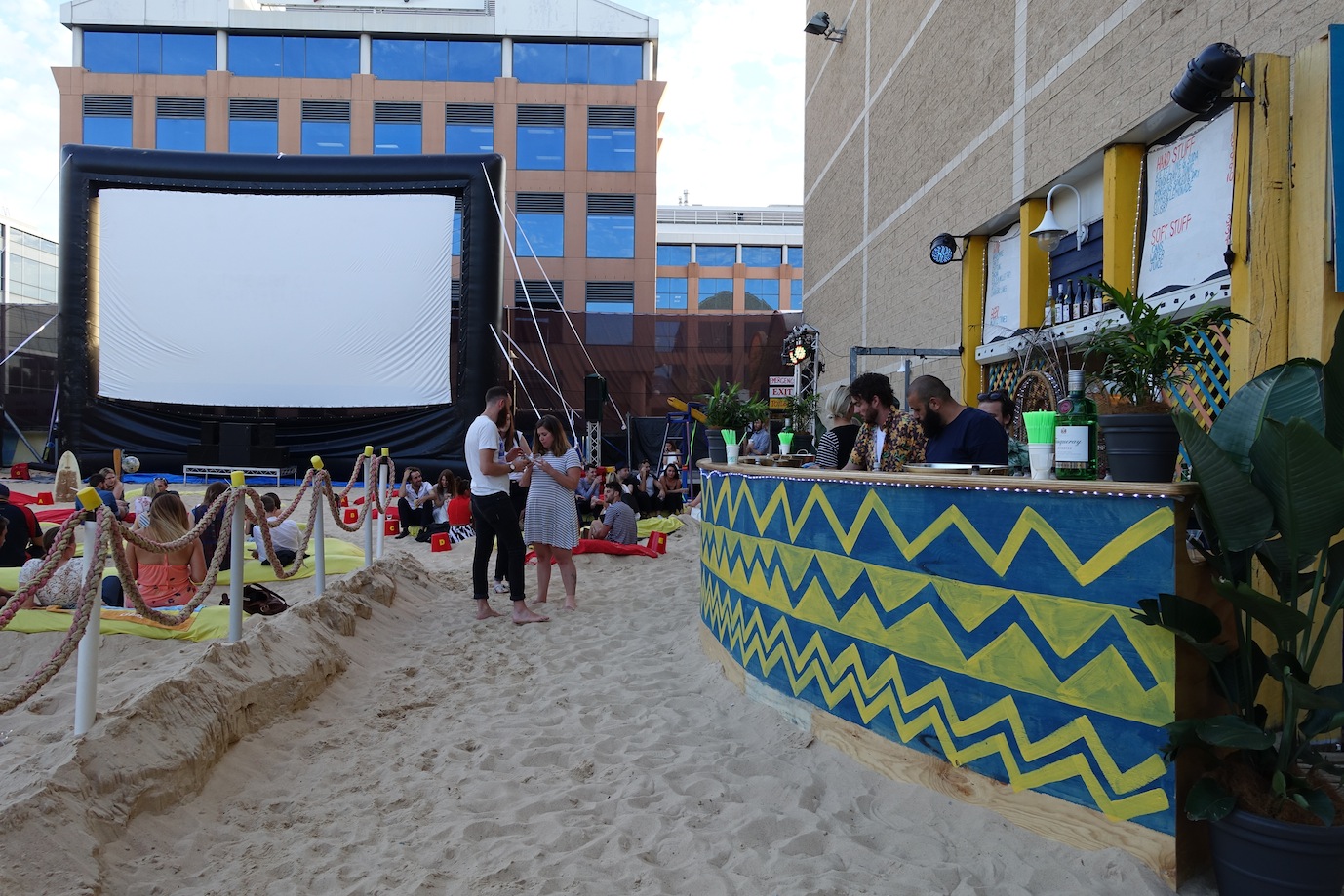 When the sun starts setting the DJ finishes up, the screen alights and a cheeky MC advises you to sit down and relax. Recline in your sand dug out seating, cuddle up to your friends, and enjoy the show. Prepare to laugh, cry and be wowed by the cinematic short stories on the screen in front of you.