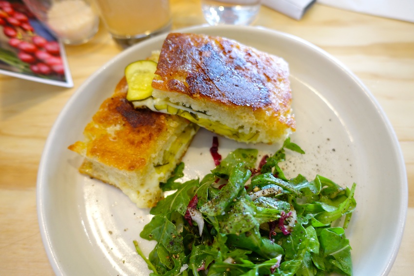 As I arrived on Sunday I bumped into a friend who was in the process of polishing off her Breakfast Rice Bowl, which came with a strong recommendation. However, with her already being a repeat customer she also told me stories of the Cheese ‘n’ Pickle Toastie, featuring smoked mozzarella and house-made mustard zucchini pickle, happily smooshed between parmesan crusted sour dough… um, NOSTALGIC SIZZLER VIBES MUCH?! Decision made.